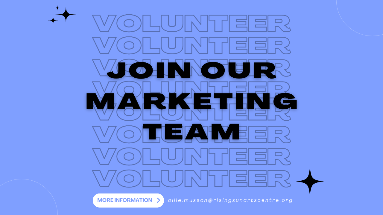 To chat more about volunteering and to receive the full role description, email Ollie at ollie.musson@risingsunartscentre.org